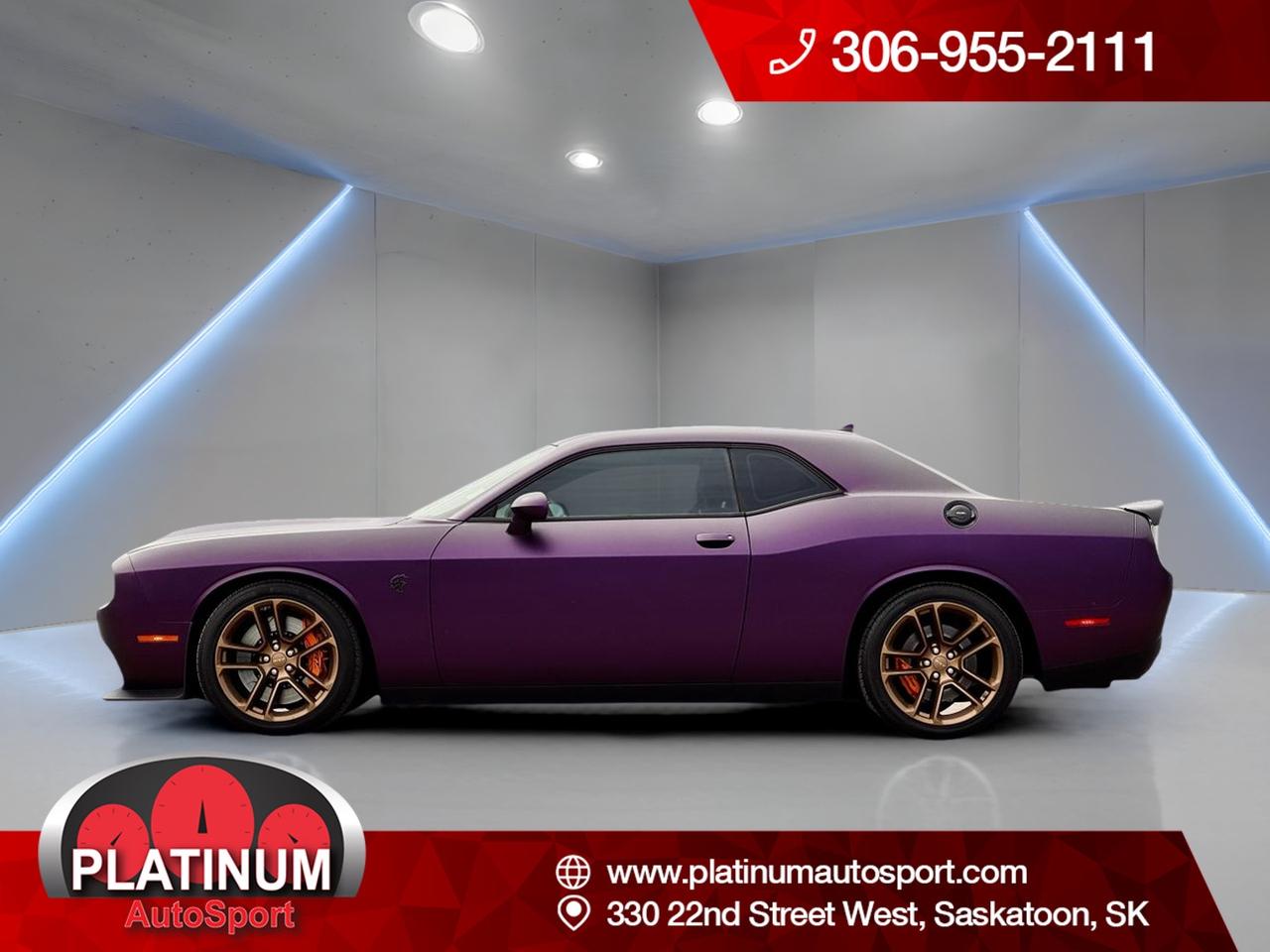 2022 Dodge Challenger SRT Hellcat RWD One Owner, Fully Loaded, Matte Purple Wrapped, No Accidents For Sale in Saskatoon, SK
