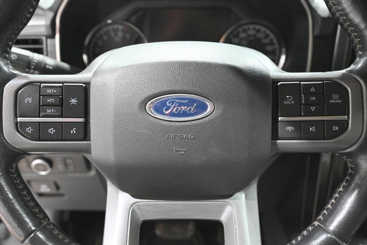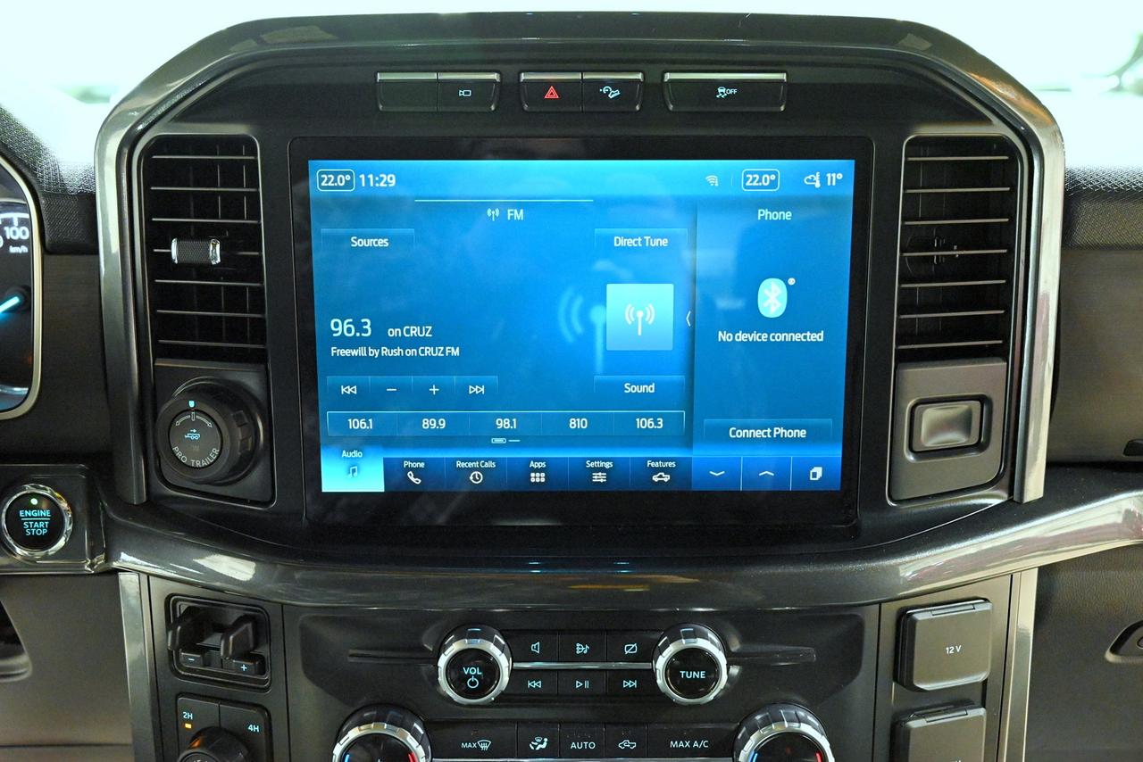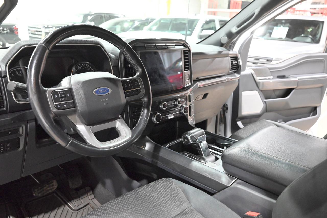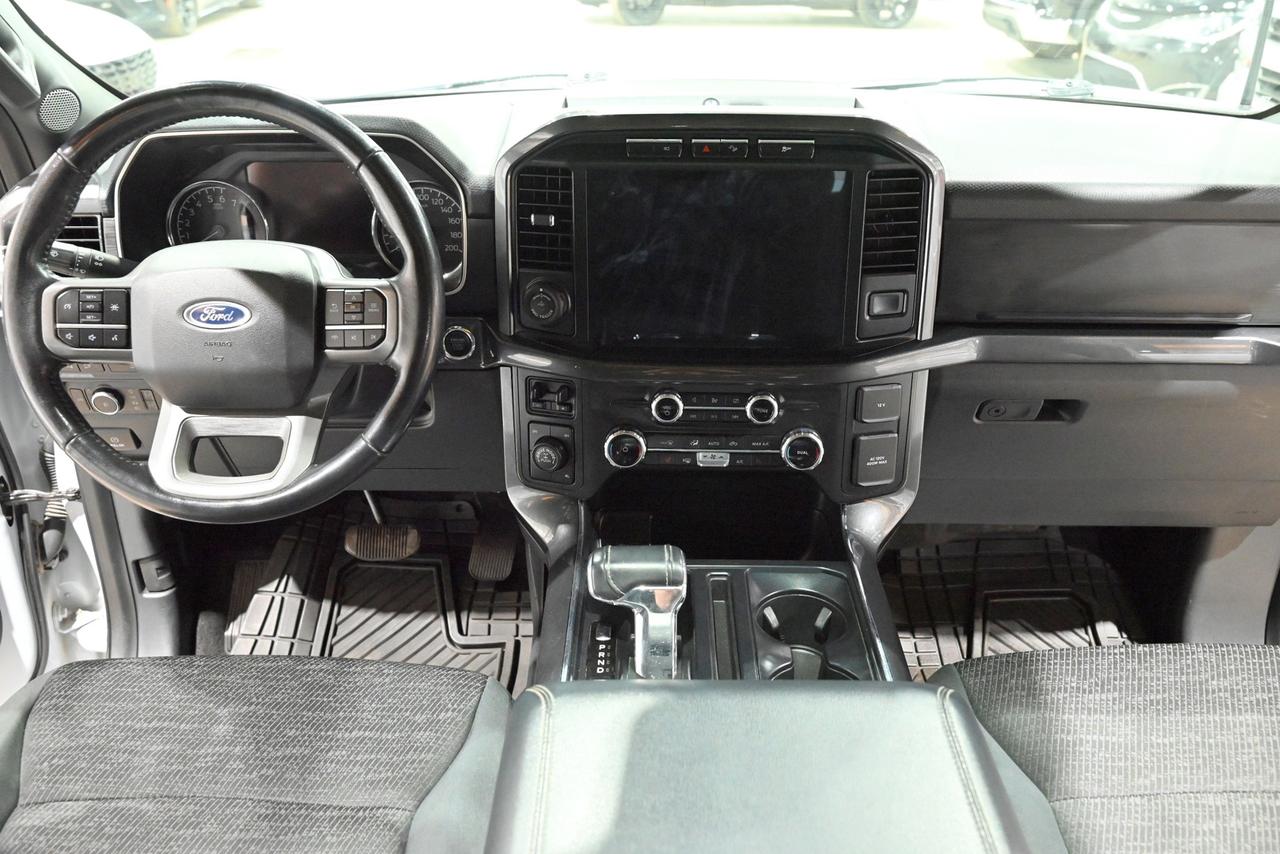 Discover a capable and well-equipped 2022 Ford F-150 XLT Crew Cab at Saskatoon Auto Connection that blends rugged capability with modern comfort. Powered by the 3.5L EcoBoost V6 and a 10-speed automatic, this 4x4 delivers confident towing and everyday smoothness - backed by an 11,300-lb towing capacity and an integrated trailer brake controller for heavy-duty jobs. Inside, the tech-forward cabin centers on a 12-inch capacitive touchscreen with Apple CarPlay and Android Auto, an 8-inch in-cluster productivity display, and a B&O premium sound system with subwoofer to make long drives effortless. Comfort is front and center with heated front bucket seats, dual-zone automatic climate control, a twin-panel moonroof that opens the sky above the prairie, and a leather-wrapped steering wheel for a refined feel. Smart, winter-ready touches like remote start, a power-sliding rear window with defroster, LED lighting, and a spray-in bedliner with LED box lighting mean this truck is ready for Saskatchewan seasons and weekend projects. Safety and trailer-focused systems - BLIS with trailer-tow coverage, cross-traffic alert, lane-keeping assist, pre-collision assist with automatic emergency braking, and a rear-view camera - give you confidence on busy roads and at the hitch. Practical work features such as the tailgate step with work surface, rear underseat storage, and an electronic locking differential with a 3.55 rear axle ratio make this F-150 as useful on the job site as it is comfortable on the highway. Finished in Space White Metallic with Black Sport Cloth, this XLT combines capability, tech, and comfort - stop by Saskatoon Auto Connection to see it in person and take it for a test drive.