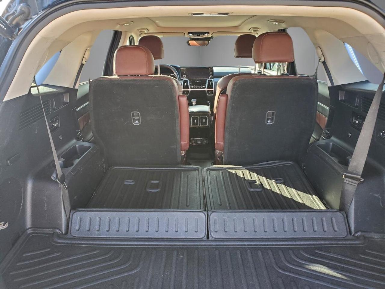 Inside, the 2022 Kia Sorento SX AWD w/Burgundy Leather offers a premium feel with thoughtful details that support comfort in every season. You get front air conditioning, rear air conditioning, rear climate control, an auto-dimming rearview mirror, ambient lighting, power windows, remote trunk release, and both driver and passenger lumbar support for added comfort on longer drives.
