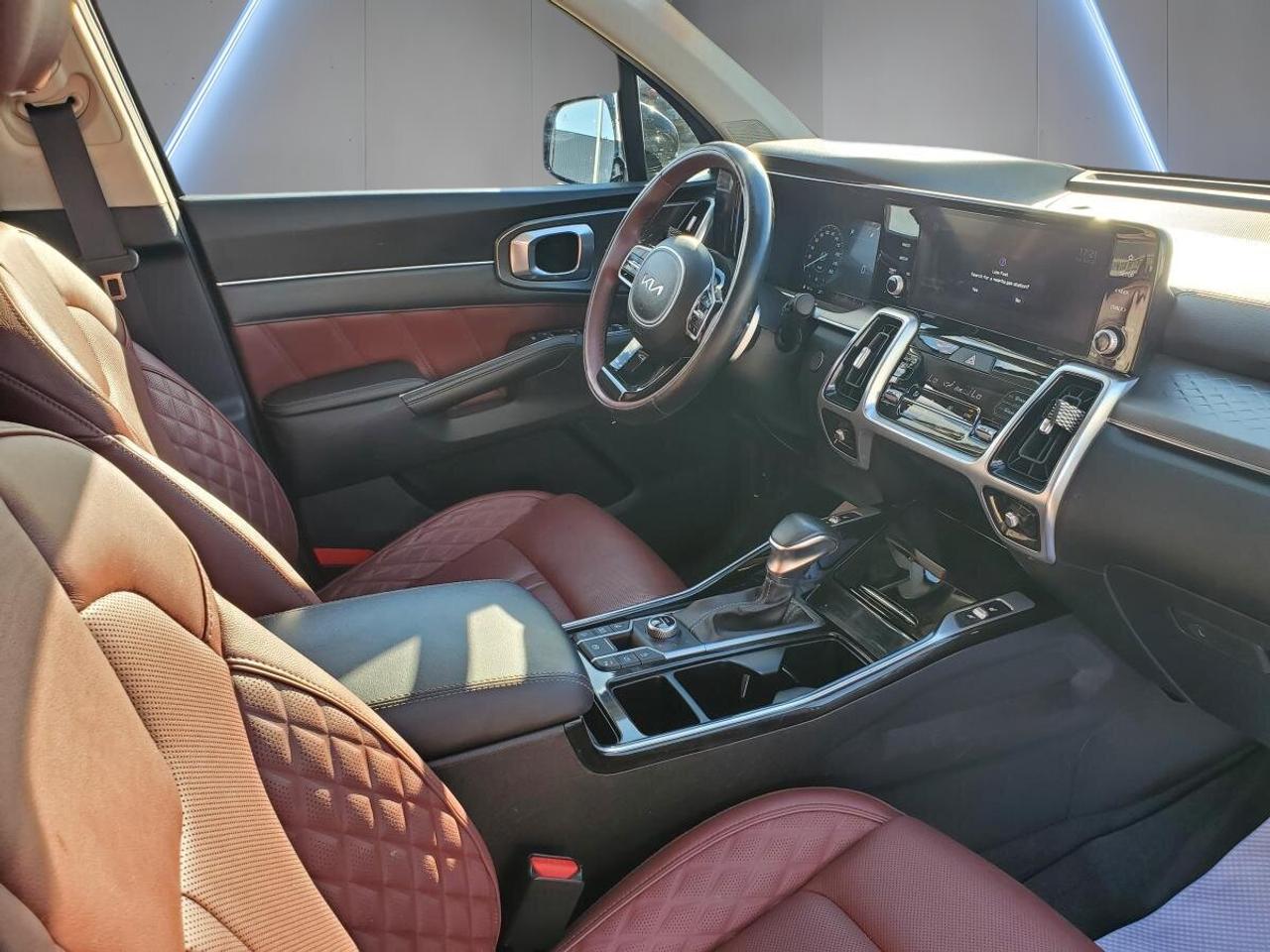 The 2022 Kia Sorento SX AWD w/Burgundy Leather brings together upscale design, smart utility, and a refined road feel. Its panoramic sunroof, navigation system, head-up display, heated front and rear seats, and power liftgate add real value to daily use. This SUV also benefits from a modern cabin layout and a strong list of driver-assist and convenience features.