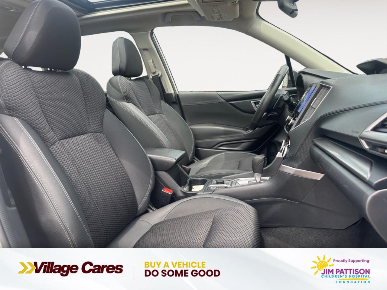 Our Forester's trim level is Touring. Taking your adventures to the next level, this Forester Touring comes loaded with a power sunroof, premium heated cloth seats, stylish aluminum wheels, a heated leather steering wheel and Subaru's class-leading symmetrical full-time AWD system. On the inside, a larger 8 inch touchscreen is powered by SUBARU STARLINK multimedia system and is bundled with Apple CarPlay, Android Auto and SiriusXM radio. Additional features include a power rear liftgate, remote engine start, a 10 way power driver seat, dual zone climate control, LED headlights, and proximity keyless entry. Occupants are kept safely on the road with Subaru's impressive next generation EyeSight technology, which includes pre-collision automatic braking, adaptive cruise control, lane centering assist and reverse automatic braking.