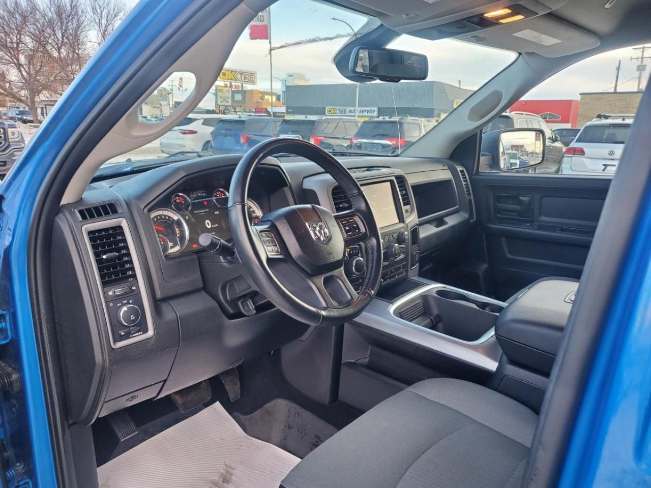 Now available at Platinum Auto Sport in Saskatoon, this 2023 RAM 1500 Classic Tradesman is an outstanding option for anyone looking for a dependable full-size pickup with low kilometres and serious capability. Finished in the rare and eye-catching Republic Services Blue with a durable Grey Cloth interior, this RAM is built for job sites, hauling, towing, and everyday driving across Saskatchewan.