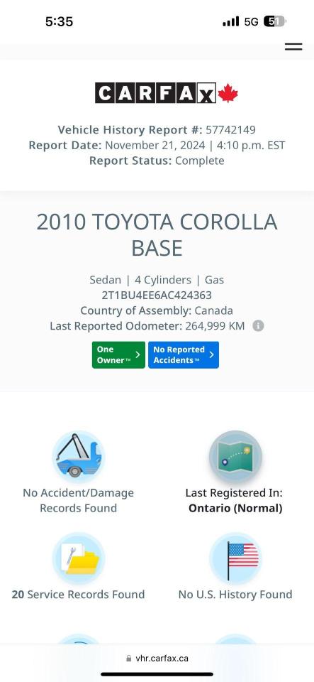 2010 TOYOTA COROLLA S