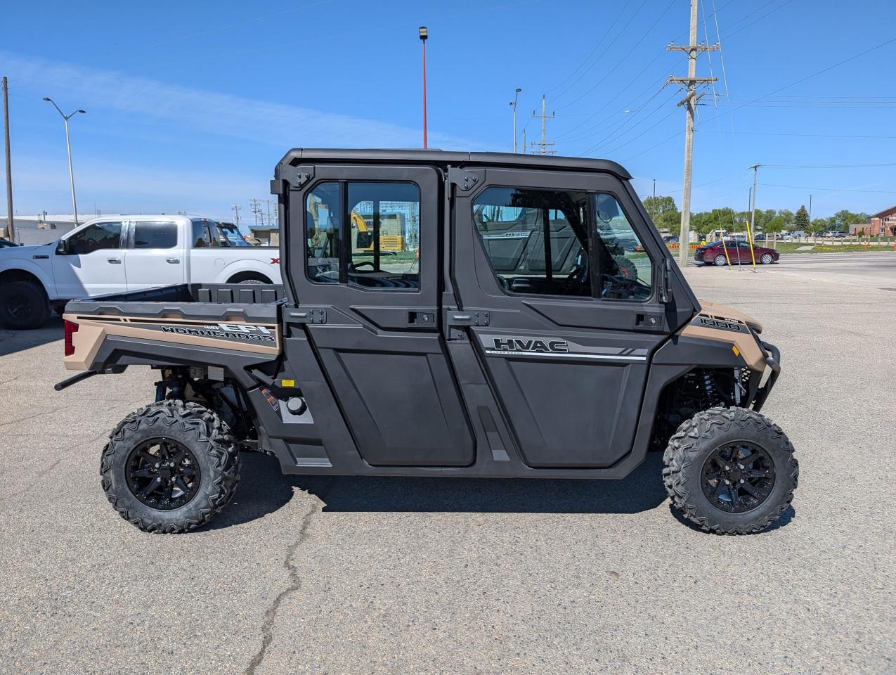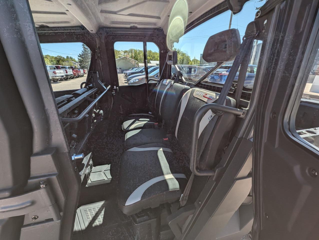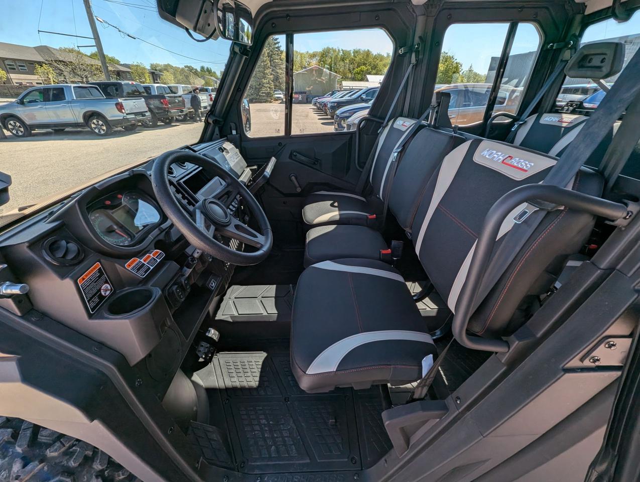 Equipped with a heating and cooled cab, a 976cc V-twin engine. Selectable 2WD-4WD-4WD front locking differential, TURF MODE. Independent dual A-arm front & rear, front wiper and washer fluid, and adjustable coil over spring rate. 3 mode adjustable power steering, and a 3500lb winch. Factory Bead lock wheels and light bar. MATTRACKS kits in-stock.