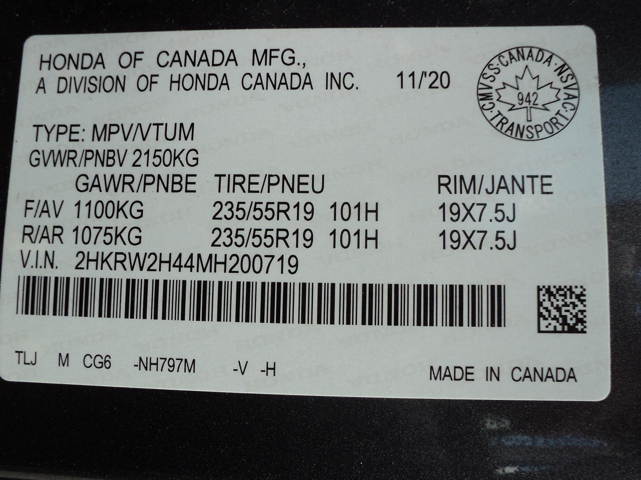VIN 2HKRW2H44MH200719