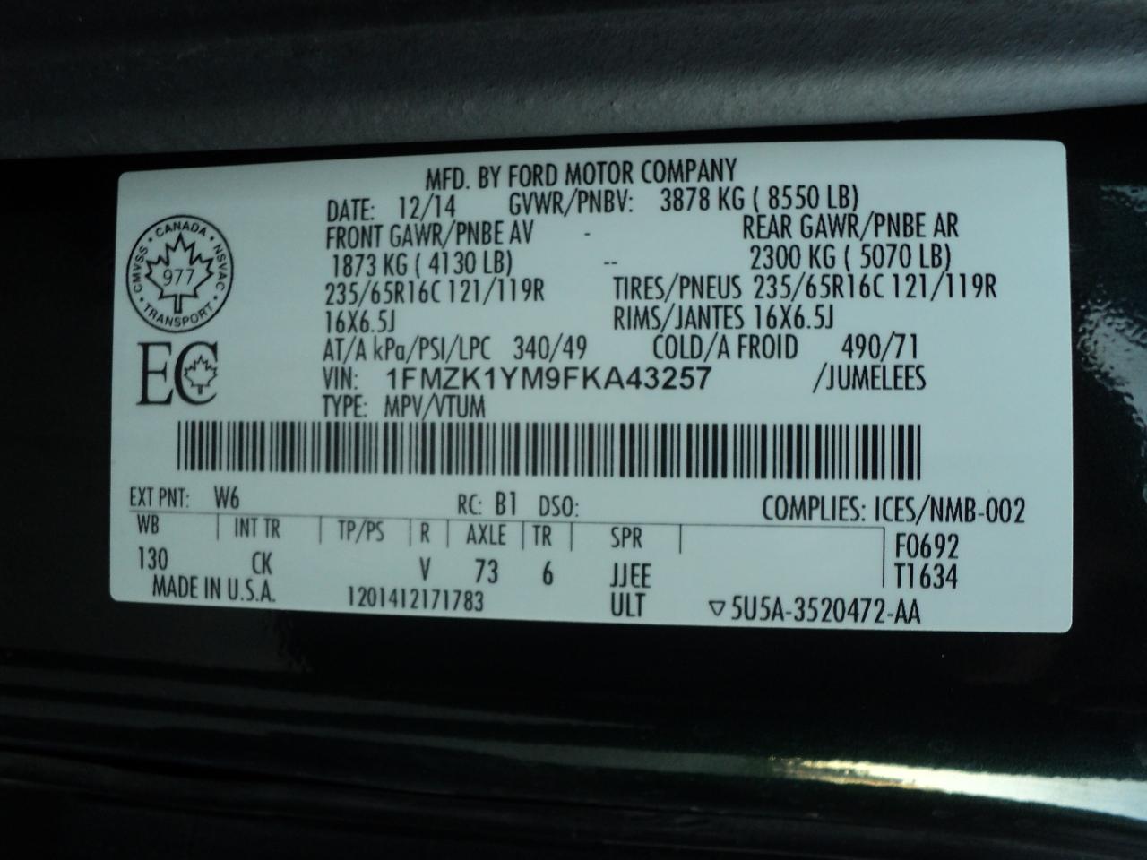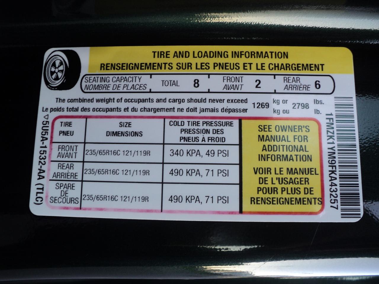 VIN 1FMZK1YM9FKA43257