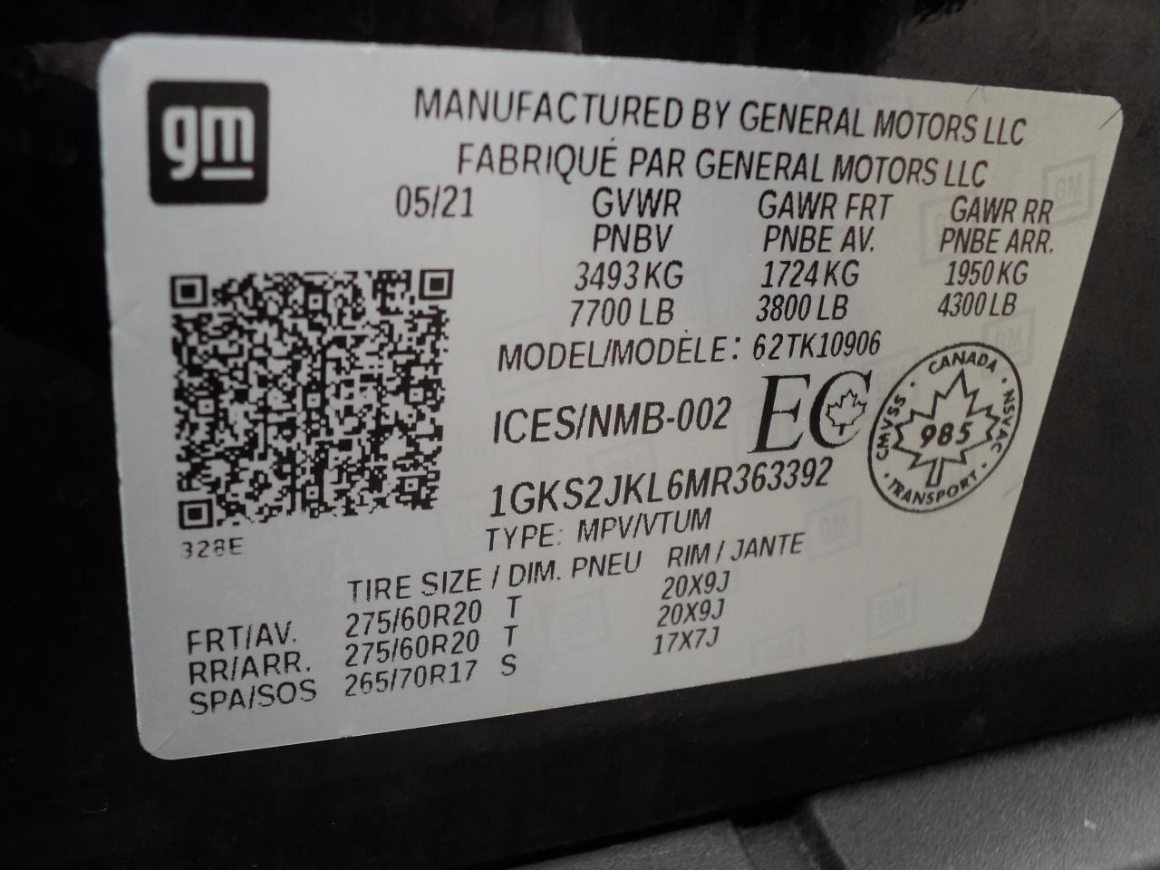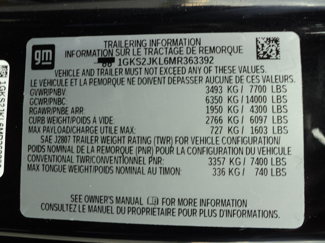 VIN 1GKS2JKL6MR363392