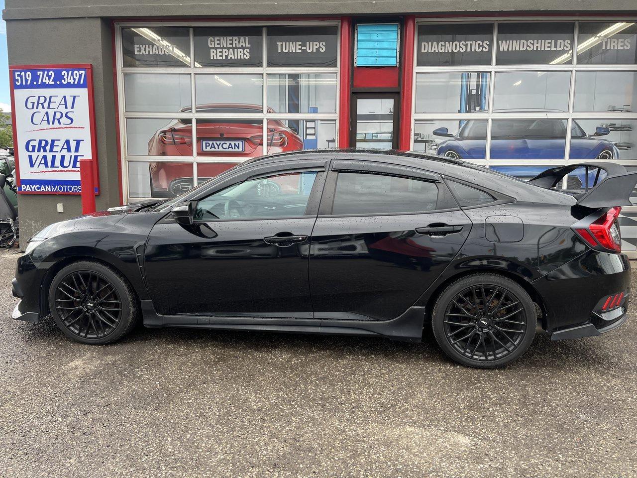 GREAT LOOKING SPORTY CIVIC, ACCIDENT FREE AND FAST LITTLE CIVIC THAT IS RELIABLE AND ECONOMICAL. THIS CAR LOOKS AND DRIVES GREAT AND IS SOLD FULLY CERTIFIED. PLENTY OF APPEARANCE UPGRADES ADDING TO THIS CIVICS STYLE. COME FOR TEST DRIVE OR CALL 5195706463 FOR AN APPOINTMENT .TO SEE ALL OUR INVENTORY PLS GO TO PAYCANMOTORS.CA