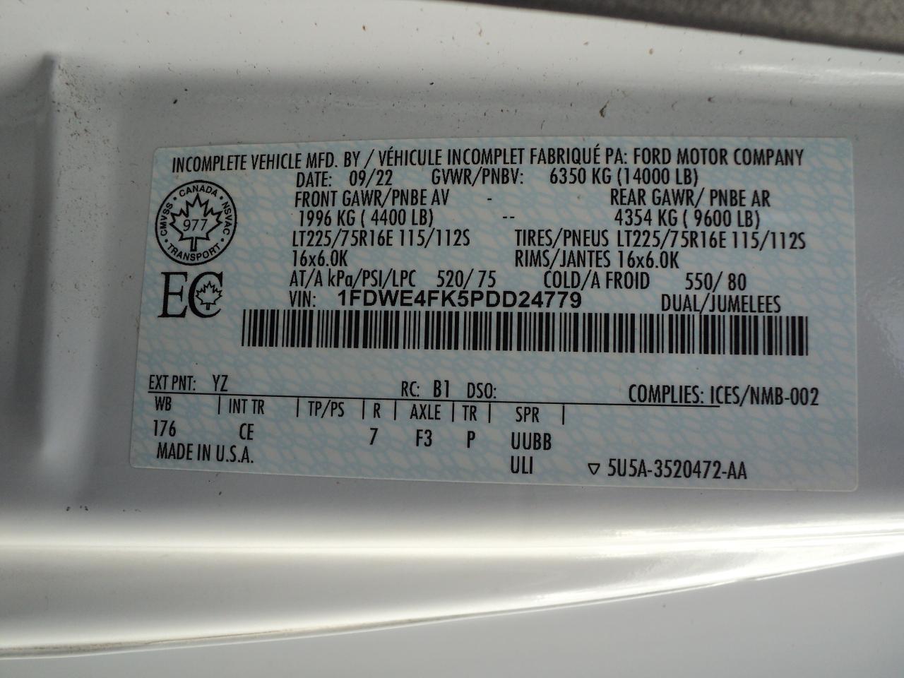 VIN 1FDWE4FK5PDD24779