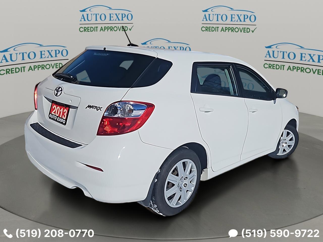 Looking for a versatile and reliable vehicle that's perfect for navigating Canadian winters? Auto Expo Inc. is proud to offer this exceptional 2013 Toyota Matrix, a compact wagon that's ready for anything. This Matrix comes in a clean white exterior with a comfortable grey interior. With only 89,000 km on the odometer, this car is barely broken in and offers years of dependable service. It is a certified pre-owned vehicle, giving you peace of mind with your purchase.
